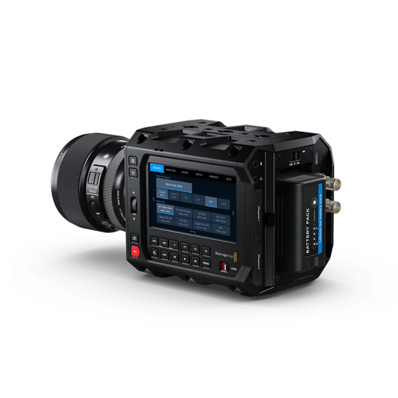 Consente la registrazione in Blackmagic RAW a 12 bit con generazione simultanea di proxy H.264 su schede CFexpress Type B, dispone di doppio ISO nativo 400 e 3200, di uno schermo touchscreen HDR da 4 pollici a 1500 nit, di una connettività estesa che include Ethernet, USB-C, SDI e Bluetooth, oltre a un corpo modulare adatto a rig, gimbal e droni.