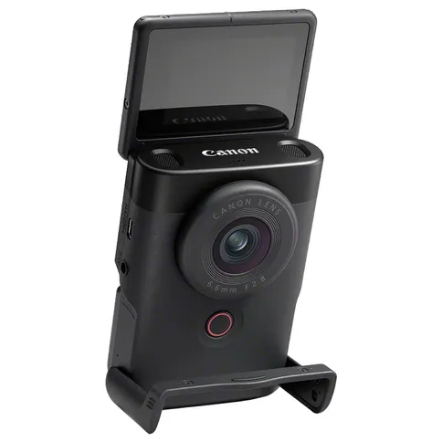 La Canon PowerShot V10 nera è una videocamera compatta dedicata al vlogging, dotata di un obiettivo grandangolare equivalente a 19 mm con apertura f/2.8 e progettata per la registrazione video in 4K in un formato leggero e autonomo, ideale per la creazione di contenuti.
